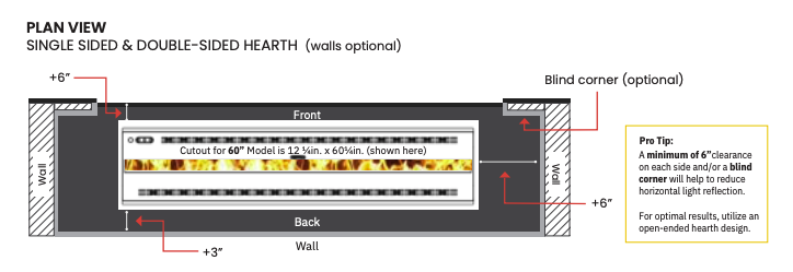 To avoid this, you'll need 6 inches or more clearance from the edge of the insert to the edge of the hearth wall. The further away the hearth wall, the less light reflection you'll see. Pretty simple!